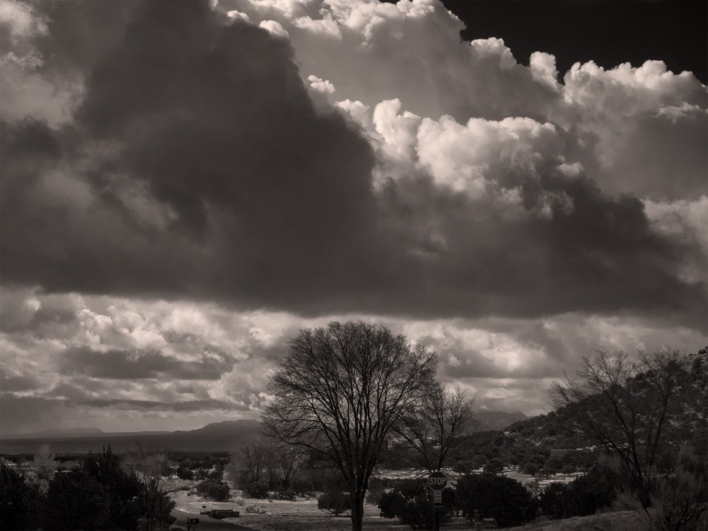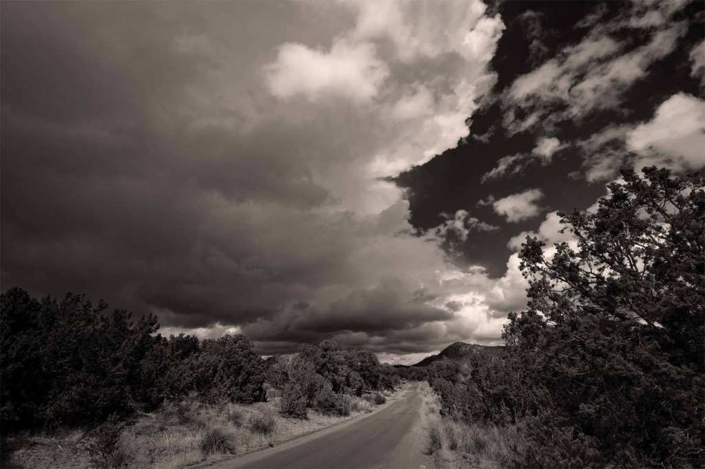 We never get tired of the dramatic play of light in New Mexico. Because we’re at 7000 feet, and higher, we get these deep blue skies. Well, that translates into a deep gray in these black and white photos.