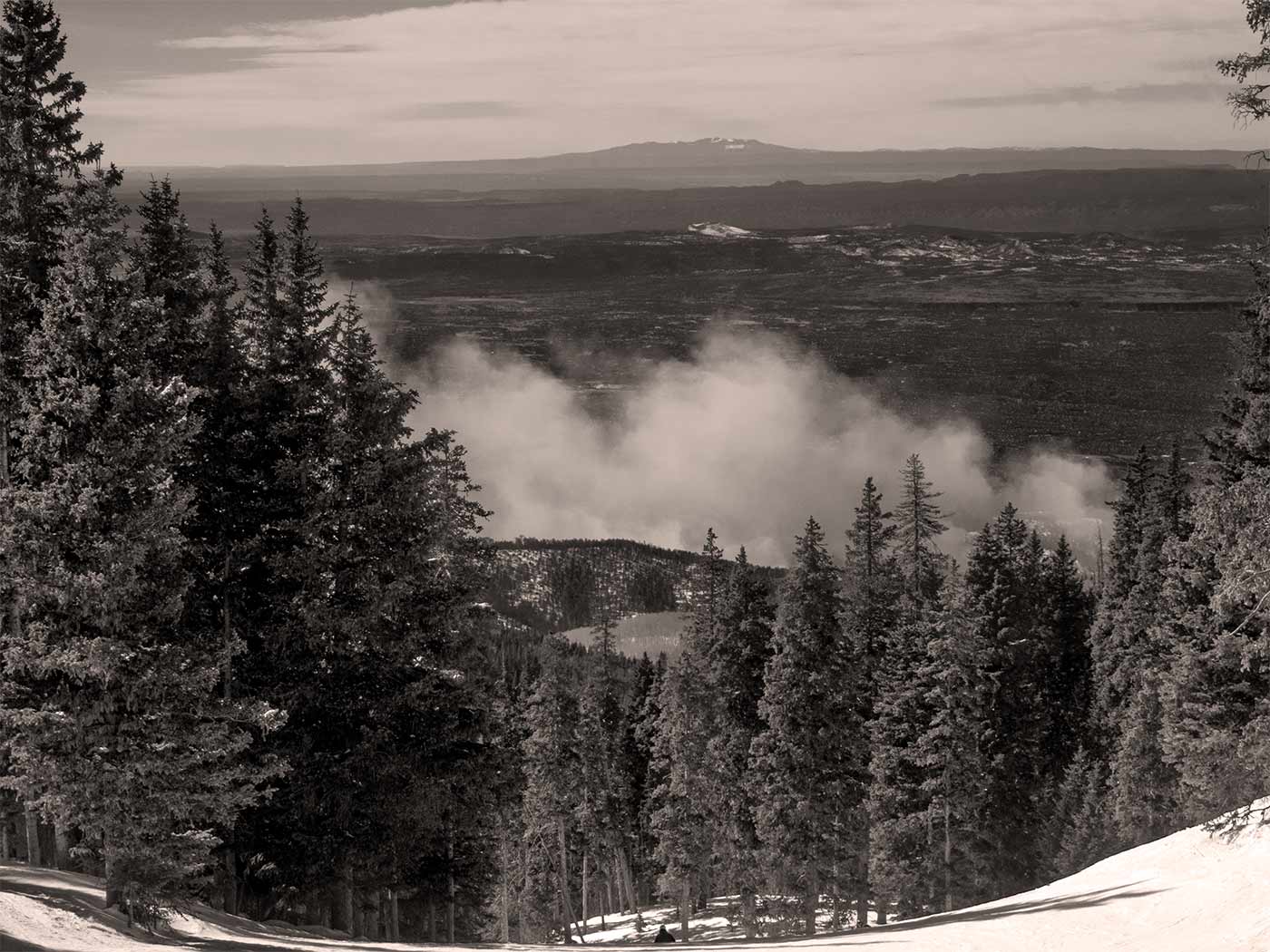 We haven’t gotten a lot of snow this year. It keeps missing us, but all the surrounding areas are getting epic amounts. Oh well, January is typically a dry month in the local mountains. February and March are generally when we get most of our snow pack which is so important for the Spring run-off. The smoke in the lower right photograph is the result of what’s called a “Controlled Burn” around here. The Forest Service will start a fire to burn out dead leaves and logs that could ignite during the hot weather.
