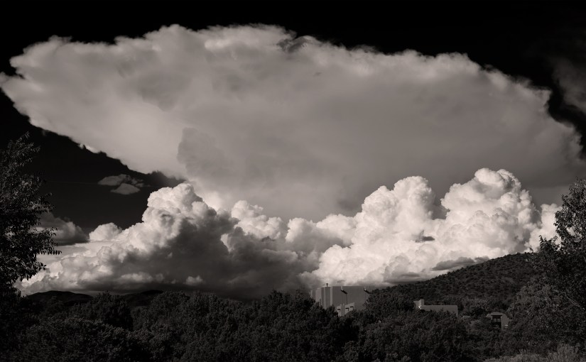 This is one picture of a cloud posted yesterday. Only this time it is much higher resolution. My camera, shooting in uncompressed RAW, can capture amazing gradations of tone in the sky and clouds. Then I compress that image for the web and everything is lost. Instead, I thought I’d try posting just one image of higher resolution and see what happens.