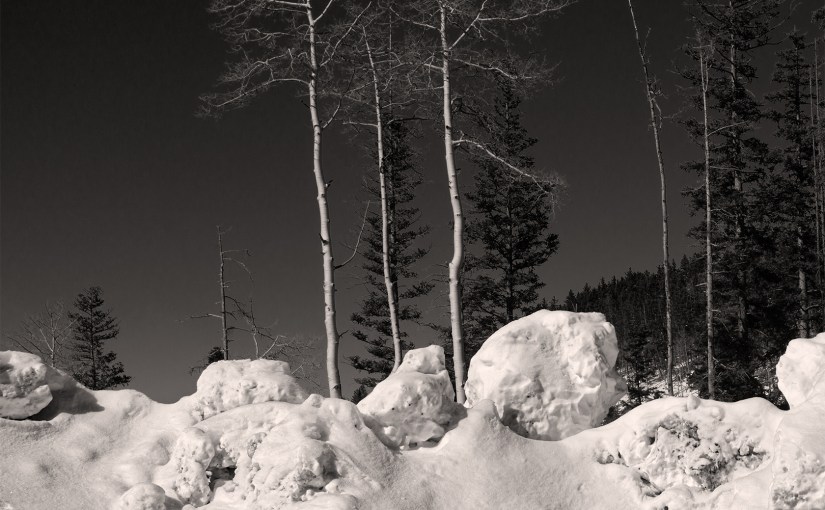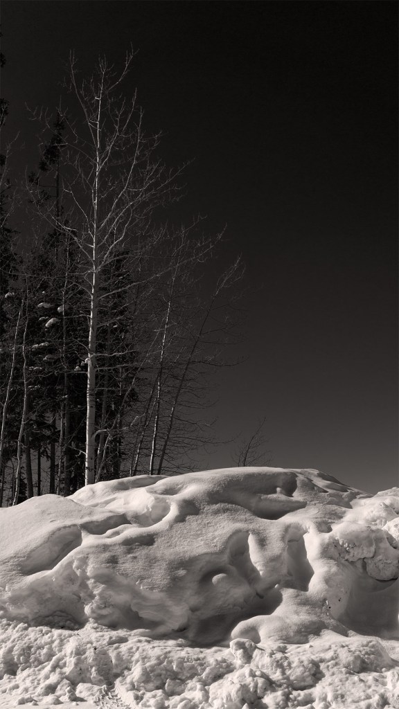 The skies at higher altitudes become blue-black. We see that a lot here because we are routinely skiing at 12,000 feet. These two shots, however, were taken a little lower down the mountain, at around 10,000 feet. But the skies are still dark on a sunny day. Here’s what I saw yesterday at our local ski area. Still using the Sony a5100 for the ultimate in portability.