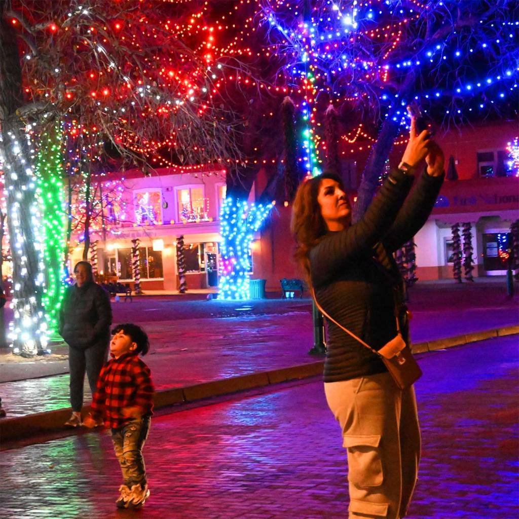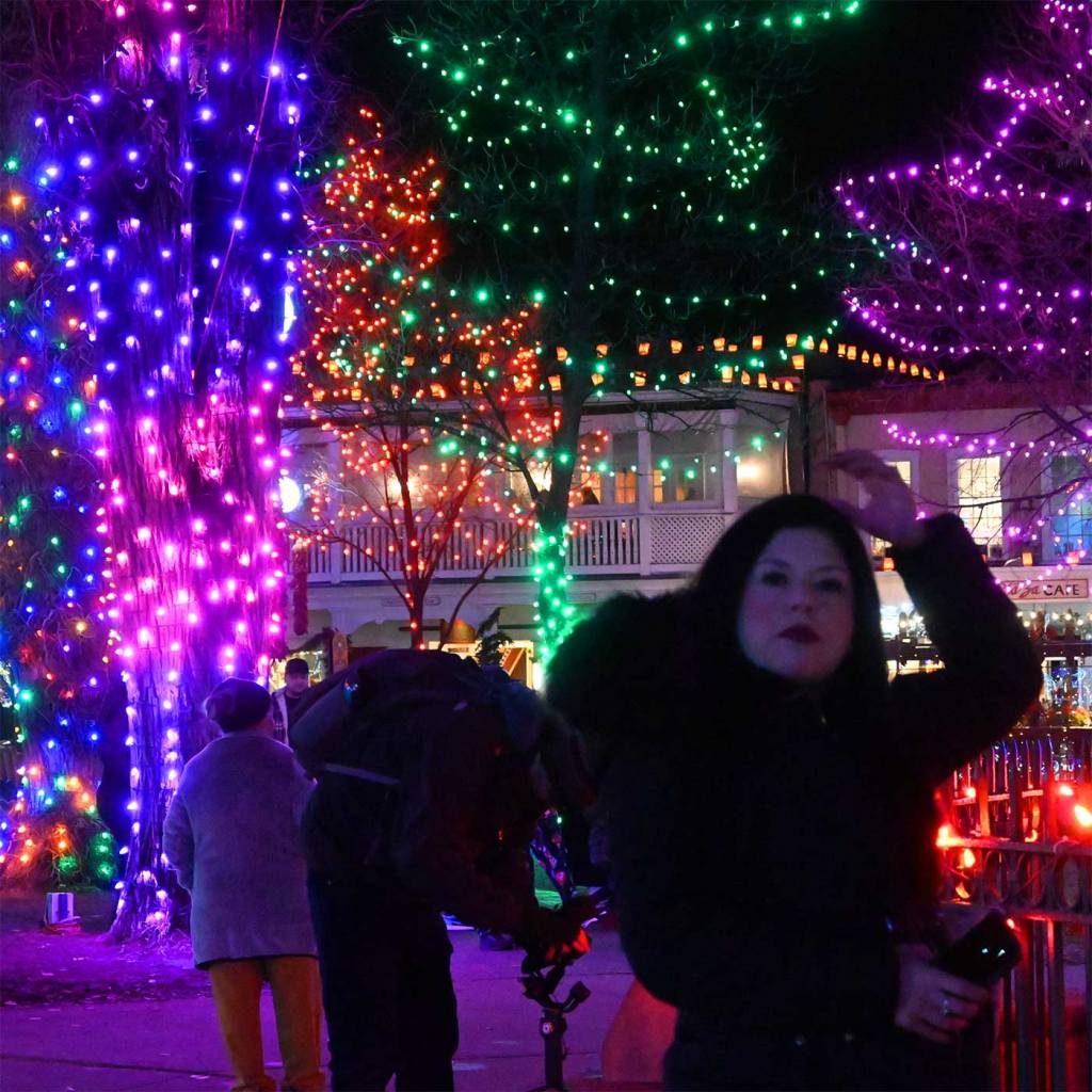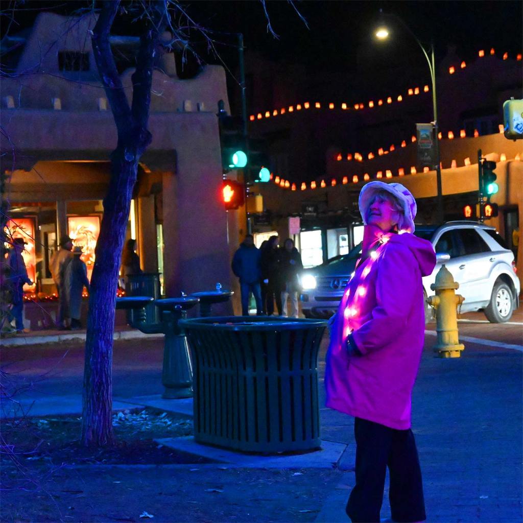 This is an annual event which I simply cannot resist posting each year. Every year we go down to the center of Santa Fe to see this light show. And every year we say, “Wow, this is the best year ever!” Here are the shots from yesterday, Saturday, December 22nd 2023. Photographically, I wanted to see what the Nikon Z50 with THE KIT LENS would do under these conditions. I was amazed that I got anything. Next test: the Canyon Road Walk on Christmas Eve.