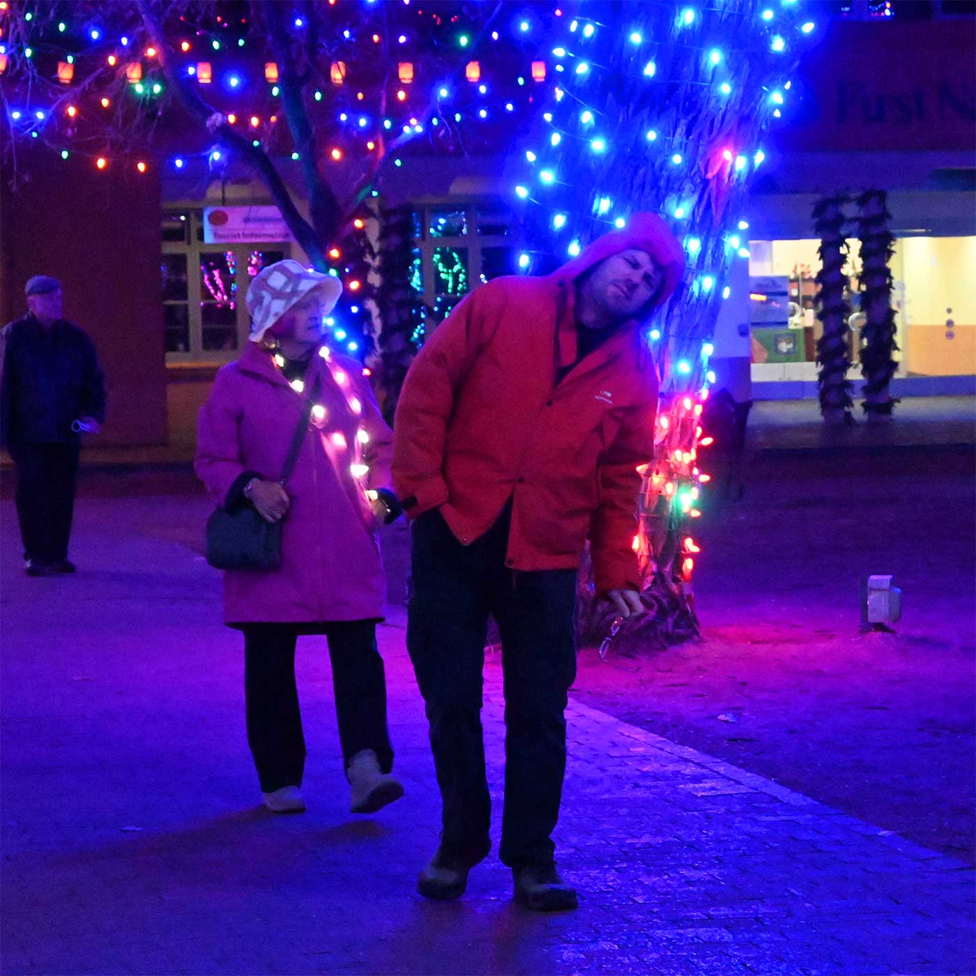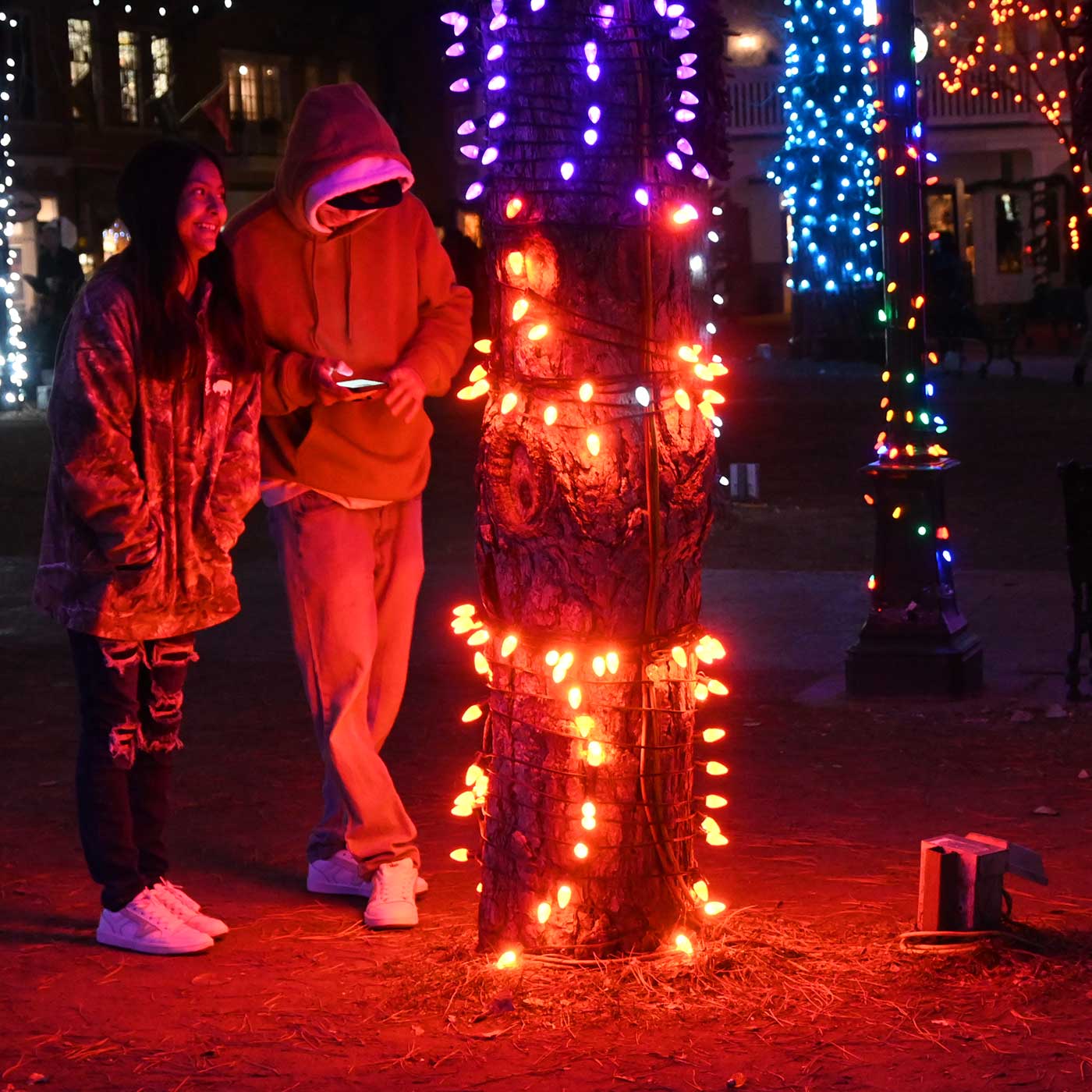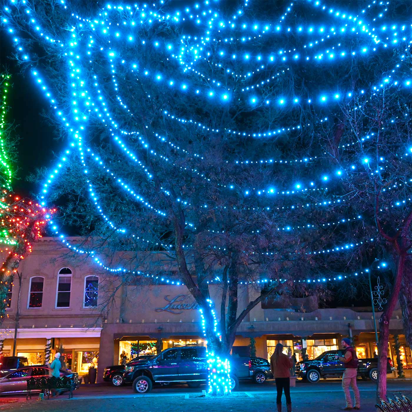 This is an annual event which I simply cannot resist posting each year. Every year we go down to the center of Santa Fe to see this light show. And every year we say, “Wow, this is the best year ever!” Here are the shots from yesterday, Saturday, December 22nd 2023. Photographically, I wanted to see what the Nikon Z50 with THE KIT LENS would do under these conditions. I was amazed that I got anything. Next test: the Canyon Road Walk on Christmas Eve.