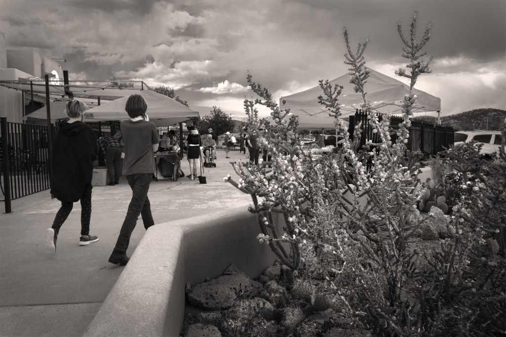 Just walking around, almost mindlessly, and yet on another plane, quite attentively, I can stumble upon some interesting scenes. These are from downtown Santa Fe and the Railyard area. I like moving around in bad weather. It’s helpful to have a camera and a lens that can tolerate these conditions. The Sony 6500, so far, has proven itself to be a Champ. Even so, I’m careful with it, sheltering it as much as possible. Maybe this is why equipment tends to last a long time with me. I use it hard, but treat it like gold.