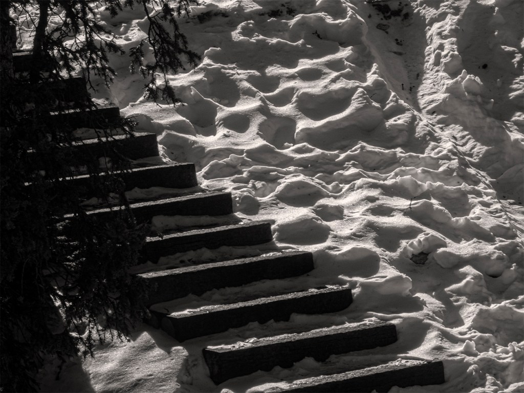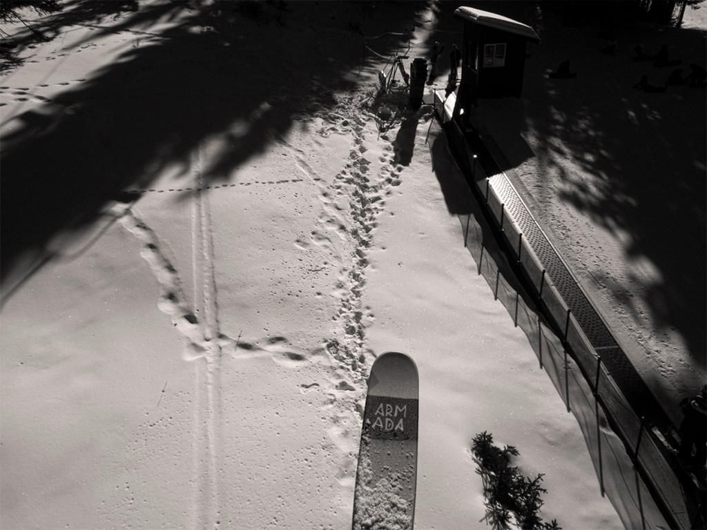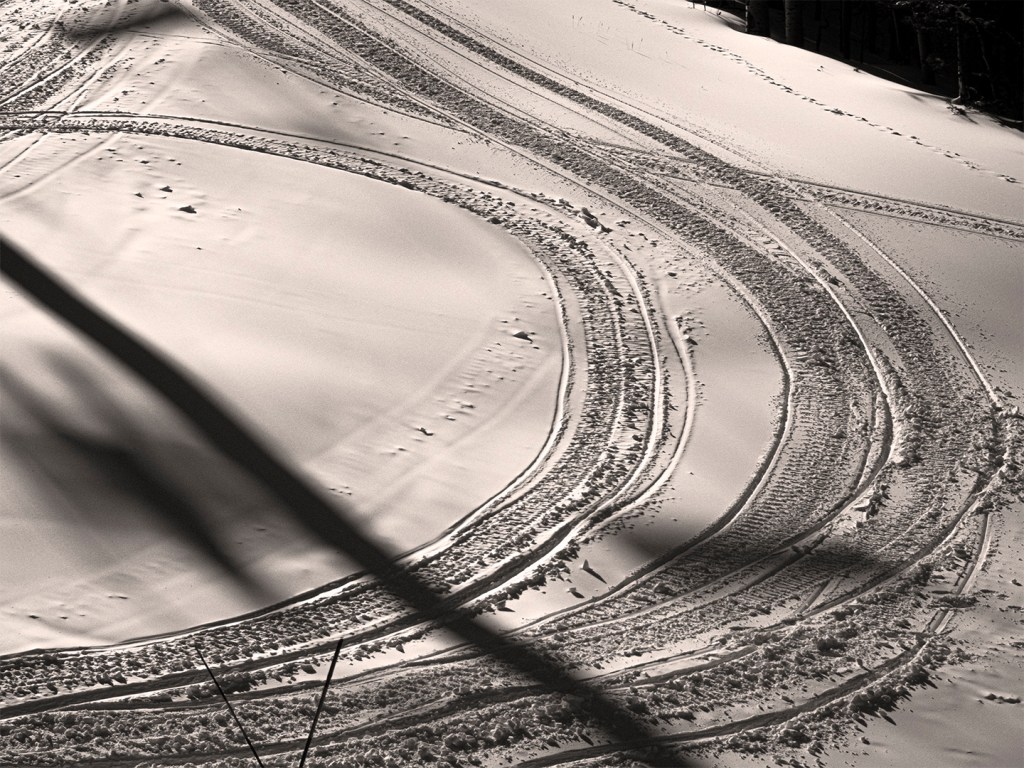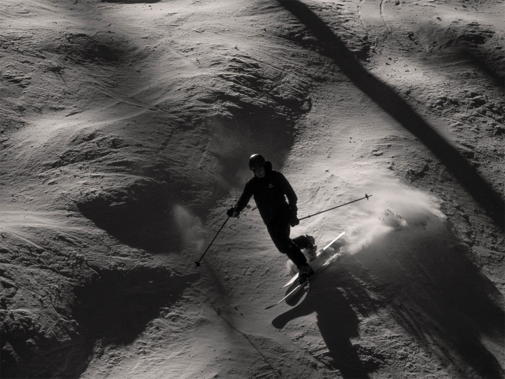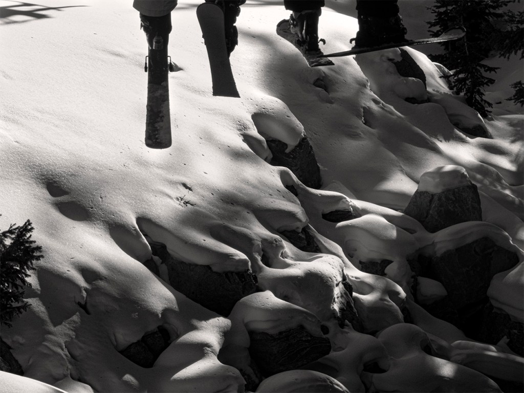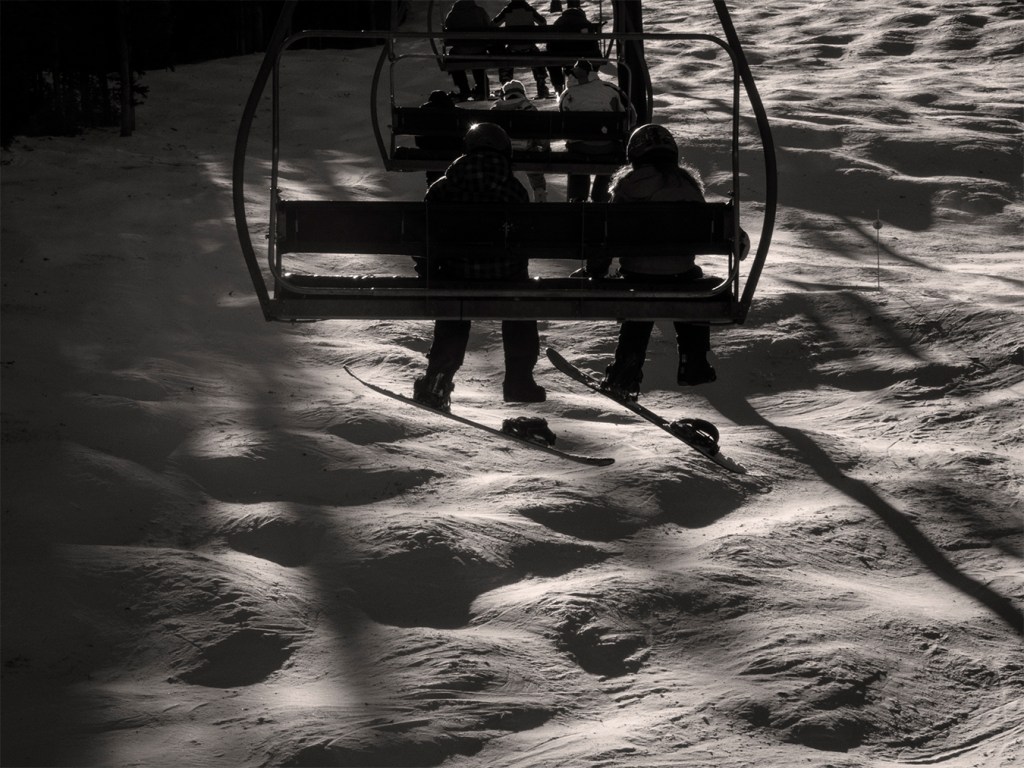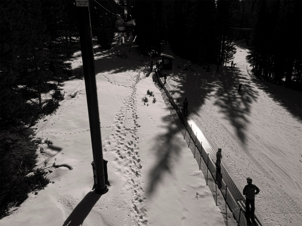 When you get up to the mountains early in the morning and early in the season, you’ll find the most dramatic lighting and shadows. Those peaks you see here are over 12,000 feet high. I like taking shots from the different chairlifts just for the vantage point. But that does create technical issues (aside from freezing hands that is). Naturally, there’s a lot of movement in all directions. Of course that can be countered, somewhat, with a high shutter speed. And it’s so intensely bright up there that I can leave the ISO at 100 for this camera….the Sony A5100. Yeah, it’s one of those “older” cameras, but it’s great for up here. It’s basically an APS-C sensor with a lens attached. Keep it warm and safe between shots and it just keeps on going. I can’t lug large kit up the mountain and this little gem is perfect. Brrrr, it’s cold up there, dress warmly.