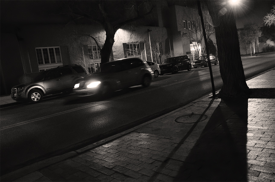 Shooting in low light is a challenge in itself. Modern cameras have become much better at this. In the “old” days we had to “push-process” the negatives to pull every bit of information from them. Now, we have cameras with ISOs (ASA in Old Speak) of 100,000. And we thought Tri-X was good with an ASA of 400. Those pictures with the really long shadows (which totally entranced me) were shot with a SONY NEX-5r. I guess that’s considered a dinosaur by today’s standards, but I still enjoy it for its good image quality and small-enough-to-fit-anywhere characteristics. Also, every image on this site, and all sites, have been crunched and crushed to the limit. So you are never seeing the full quality of the original. If it looks OK here, it looks a lot better “in person”. With the NEX, I was using the much maligned “kit” lens, that 16-50mm. All lenses have their limits, but the idea is to find the optimal combinations for each lens. I love that lens for its petite-ness.
